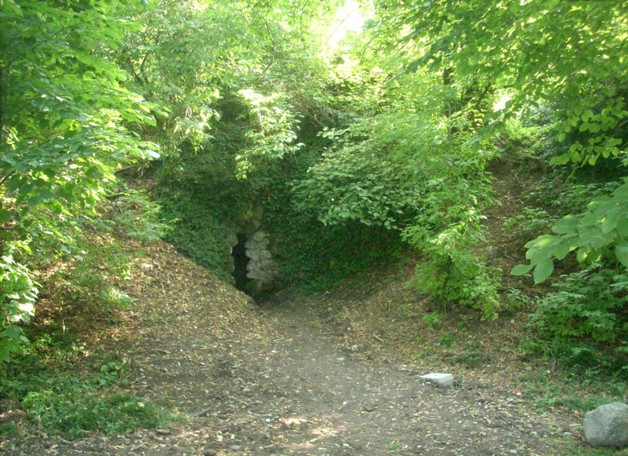 La ghiacciaia si trova di sotto all’ampio rilievo occupante quasi tutto il lato ovest del parco. L’ingresso è costituito da un portale ad arco rustico, composto di pietre di sasso. Si procede all’interno salendo alcuni gradini in pietra che portano proprio nella sala della ghiacciaia; un’ampia stanza circolare, voltata sin dalla quota del pavimento, al quale si giunge scendendo una ripida scaletta. Il tutto è in cotto.